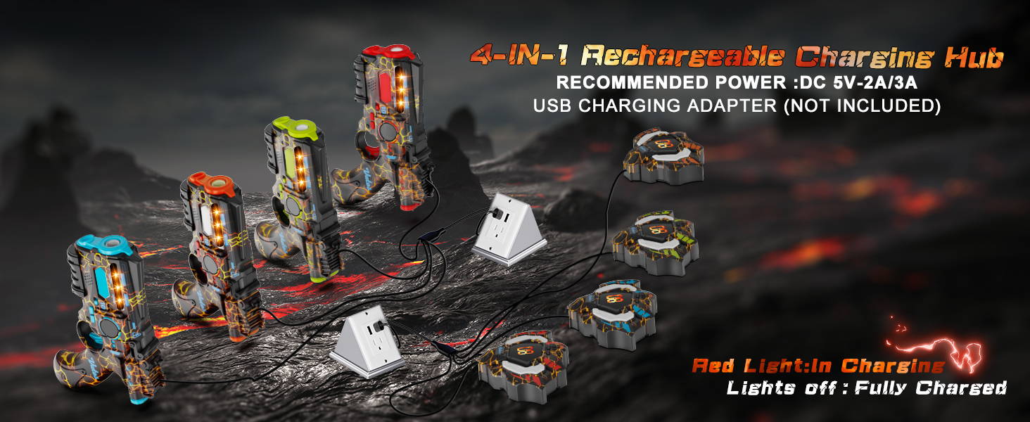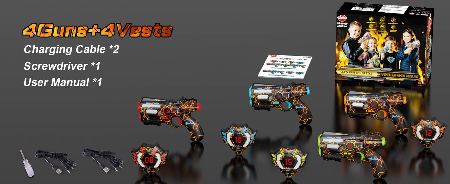 Say goodbye to constant battery changes! The rechargeable laser tag guns and vests come with a 4-in-1 charging cable, allowing you to charge all gear simultaneously. Each charge supports approximately 8 games, With a 131ft shooting range, ensuring hours of uninterrupted play. Perfect for outdoor family games or teenage group activities, this set keeps the fun going without any downtime