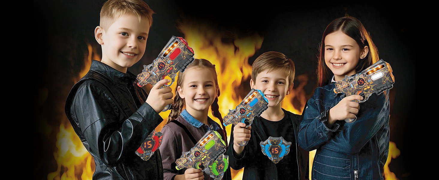 Bring the ultimate laser tag game experience to your backyard, park, or outdoor space! This rechargeable laser tag set includes 4 guns and 4 vests, perfect for kids, teens, and adults aged 6-12+, 2.4GHz data synchronisation which keeps a score for all players and an LED display on both the guns and vests, this set delivers non-stop action and excitement. Whether it's a family game night, or a birthday party, this cool and tech-savvy set is sure to be a hit!