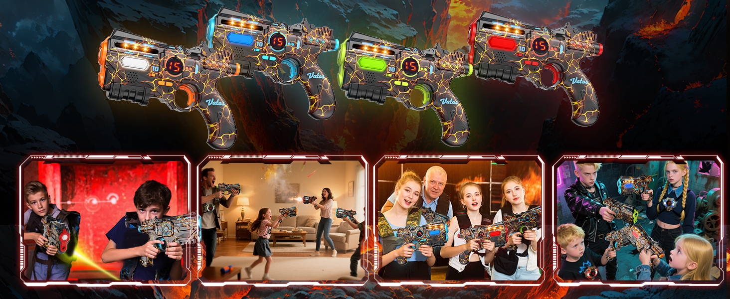 Want to make the game even bigger? Scale up by acquiring multiple identical VATOS laser tag sets, allowing you to engage in epic battles with an unlimited number of players. Whether you're hosting a teen birthday party, family gathering or holiday party,christmas, this set is the perfect gift for boys, girls and teens, Safe for kids,this set uses infrared technology—no harmful lasers here!